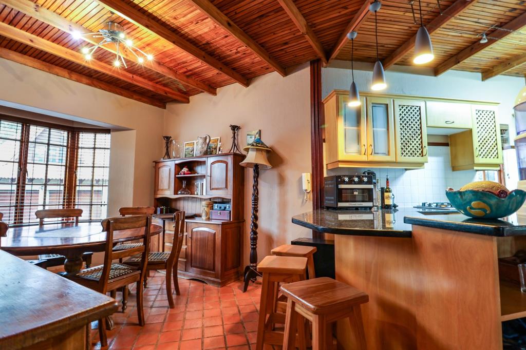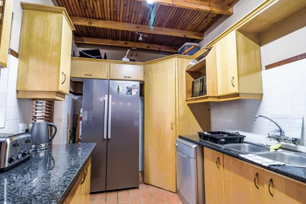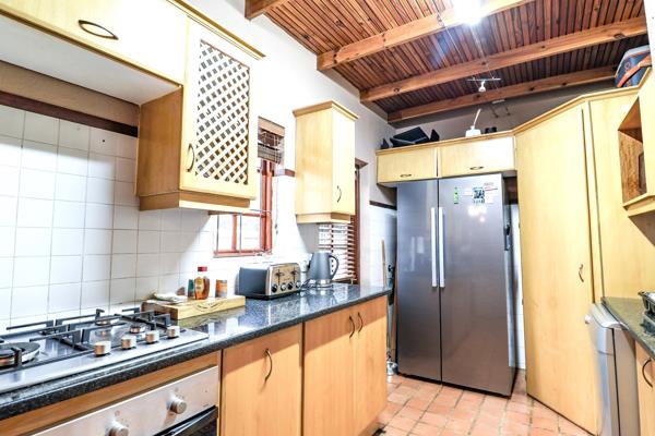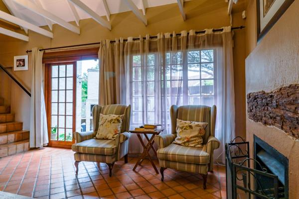 Main Bedroom is conveniently downstairs and has a French door that opens onto patio with built-in braai, Main ensuite offers bath-shower combo.