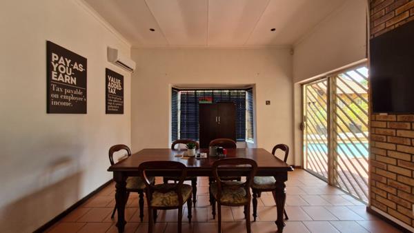 This distinguished residence, situated in the desirable suburban enclave of Faerie Glen, Pretoria, presents an exceptional opportunity for discerning homeowners. The property immediately impresses with its classic brick facade, red tiled roof, and a long, meticulously paved driveway leading to a covered carport, offering two dedicated parking spaces. Mature palm trees and lush greenery enhance the kerb appeal, complemented by robust brick boundary walls and comprehensive security features.