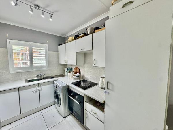 This well-kept first-floor unit offers a generous living area that flows seamlessly into a kitchen, complete with a pantry, melamine cupboards and formica countertops.