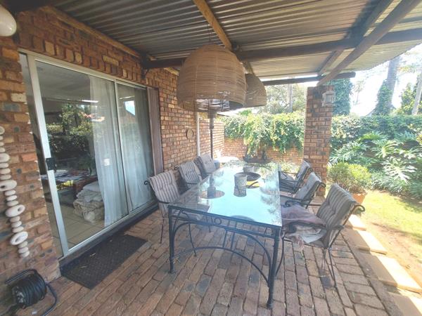 Open plan lounge and dining room. Living areas open up with sliding door to under roof patio with braai area.