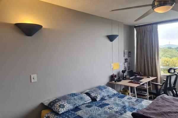 Corner unit with beautiful view on Glenwood. This unit offers the best of the complex with spectacular view, excellent security and good loction. Have the option of own living or comfortable rental income. The uniit consists of 3 bedrooms, 2 bathrooms, spacious living area with large balcony north and east, and beautiful renovated kitchen. Offers quiet and safe living and ideal for young adults enrolled with any educational institute in the area or working in the Menlyn Maine node. The unit comes with 2 lock up garages and 1 parking bay, Pre paid electricity meter installed.