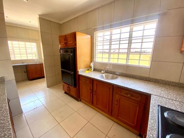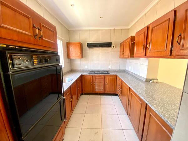 Lovely spacious family home with 3 beds, 2 bath with double lock-up garage and double car port in 24-hour security village. Kitchen with scullery, pantry and laundry. Established small garden with irrigation system. Domestic quarters, newly painted, Air Conditioning.