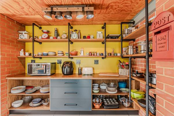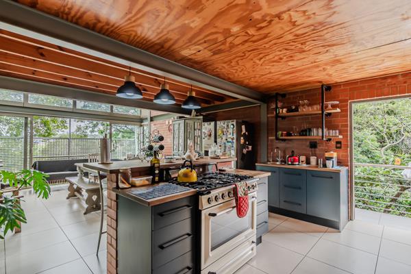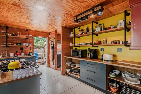 On the main floor, the well-appointed kitchen accommodates a long dining table (double volume) and features ample cupboard space, a scullery, and laundry area. It also boasts a gas hob with an electric oven.