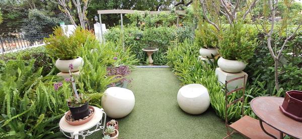 Outdoor living is a highlight, with a private patio and garden area that serves as a tranquil oasis. Adorned with lush greenery, diverse potted plants, and artificial turf, this low-maintenance space is perfect for outdoor relaxation. A shade sail provides comfort during sunny days, and a small outdoor seating area invites alfresco enjoyment. The property also features a balcony, offering additional outdoor access and views. Pets are allowed, making it a perfect home for animal lovers.