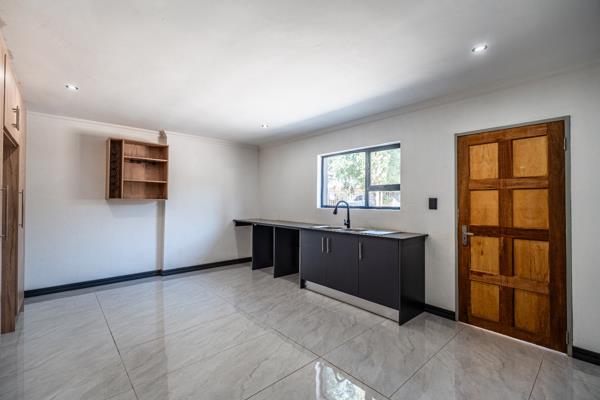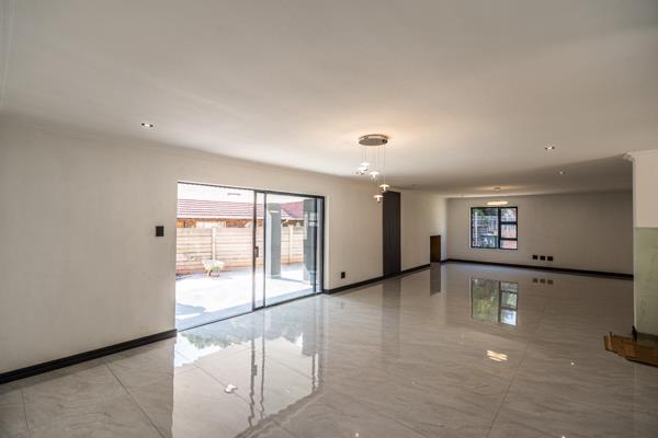 As you step through the front entrance, you are welcomed into a bright and expansive entrance hall that sets the tone for the rest of the home. The layout flows effortlessly into a spacious open-plan dining area, which serves as the central hub of the home and connects seamlessly to an additional living area, perfect for relaxed family gatherings or entertaining guests. The modern kitchen has been designed with functionality in mind, featuring ample cupboard space, room for all your appliances, and space for a double-door fridge. The clean lines and contemporary finishes offer a sleek look, while still providing a blank canvas to add your personal touch. Please note: no stove or oven is currently installed, allowing buyers to install their preferred model.