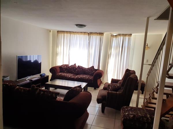 Situated in a well secured complex, this fully tiled 3 beds, 2 baths duplex with all the bedrooms upstairs and a lockable carport has a private garden. The complex is close to the public transport route and all amenities.Within a walking distance to the shopping centre and easy access to the major highways. Pre-paid electricity.