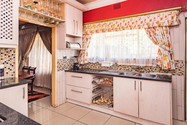 This stunning 6-bedroom home seamlessly blends modern sustainable features. The open-plan layout creates a spacious and inviting atmosphere, connecting the lounge, dining room,and TV room with a fireplace, complete the desire to own this home. The main house consists of a modern and spacious kitchen.