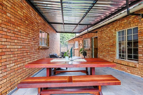Outside, the braai area and swimming pool create a relaxed setting for weekends and get-togethers. A borehole provides reliable water, and the solar system keeps the home running smoothly during outages.