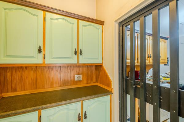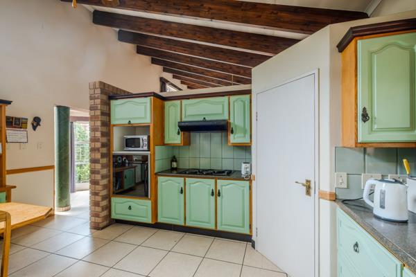 The outdoor entertainment area is perfect for hosting unforgettable gatherings and making memories with family and friends. Features include an enclosed pool, covered patio, built-in braai, and space for an outdoor dining table.