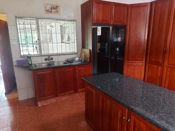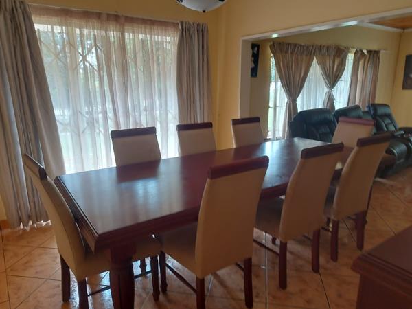 4 bedroom and 3 bathrooms. The main bedroom and one guest bedroom has en-suite bathrooms, and small study. Lovely kitchen , lounge and dining room and 2nd lounge There is a double covered carport as well and Double Garage and Domestic courters. LOVELY POOL