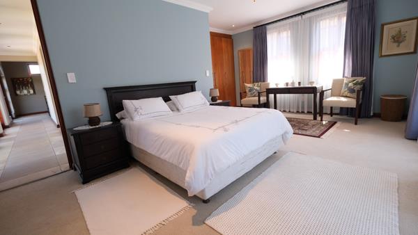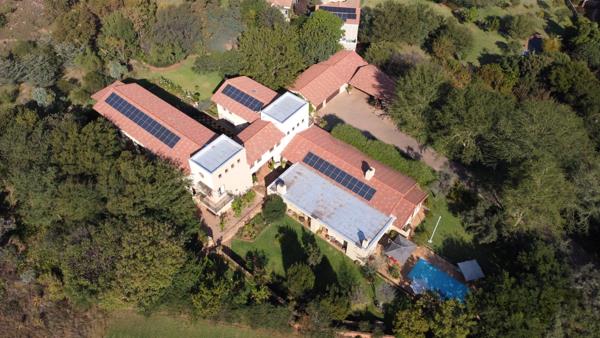 Sustainability is seamlessly integrated into the property with purifying tanks, borehole water, and Jojo tanks for efficient water management, complemented by a beautifully landscaped garden with meandering paths, bee boxes contributing to biodiversity, and automated irrigation for effortless maintenance. With three automated garages and four covered carports, parking is never a concern, offering ample space for vehicles and storage.