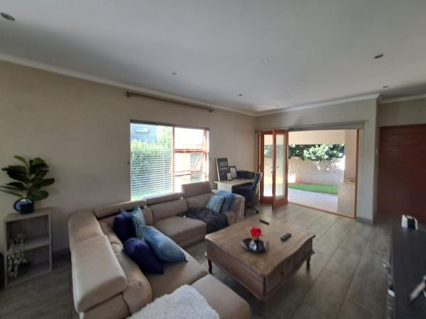 Welcome to this absolutely stunning 3-bedroom, 3-bathroom double-story home, where modern luxury meets family comfort. This exquisite property boasts a main bedroom with a fully equipped en-suite bathroom, offering ultimate relaxation and privacy. Step out onto your own personal balcony that overlooks the lush garden estate, presenting breath-taking views of the surrounding greenery the perfect spot to unwind. All three spacious bedrooms are located on the top floor, designed to offer both tranquillity and privacy. On the ground floor, you''ll find a convenient guest bathroom, adding to the thoughtful design of the home. The open-plan lounge seamlessly flows into a sleek, island-style kitchen, which is enhanced with a stylish thin red accent that adds a touch of warmth and modern flair. The lounge opens up to sliding doors that lead to the outdoor braai area, perfect for entertaining guests or enjoying cozy evenings with family. The wrap-around garden elevates the property, offering ample space for outdoor activities or simply enjoying the beauty of nature in the privacy of your own home.