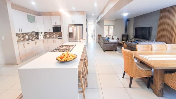 Step inside and youll immediately appreciate the attention to space and detail. The open-plan kitchen, dining and lounge flow effortlessly together, opening through stack doors to the private back garden and covered patio with built-in braai perfect for summer entertaining next to the pool.