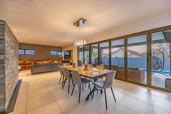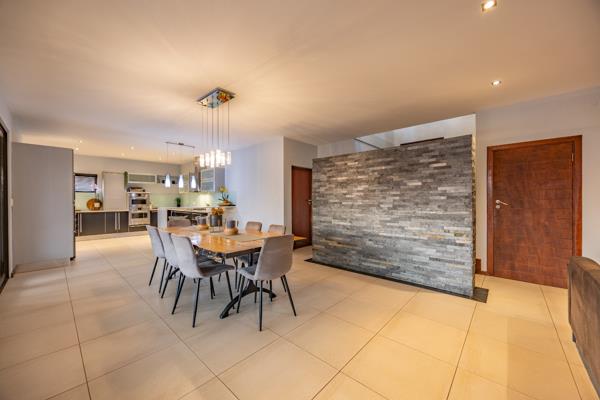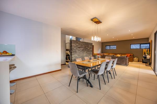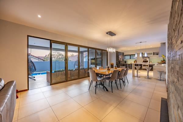This stylish modern home, nestled within a small and secure estate in Olympus, offers a lifestyle of comfort and convenience. Designed with open-plan living in mind, the lounge and dining areas flow seamlessly into the contemporary kitchen, finished with sleek Caesarstone countertops and Sterling fittings. The kitchen boasts space for a double-door fridge, an electric stove with a gas plate, a double oven, and a separate scullery that neatly accommodates three appliances. Aluminium finishes throughout add a touch of sophistication, while large windows invite natural light to enhance the airy atmosphere.