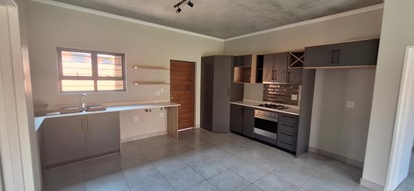 A spacious open plan kitchen boasts ample built-in cupboards, a pantry, granite countertops, gas hob, electric oven and an extractor fan.