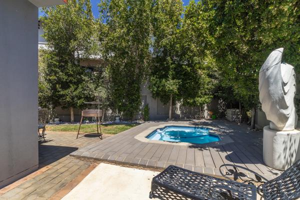Enjoy a low-maintenance garden featuring a heated splash pool, creating the perfect setting for year-round enjoyment.
