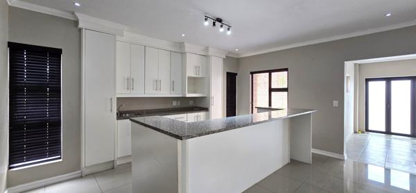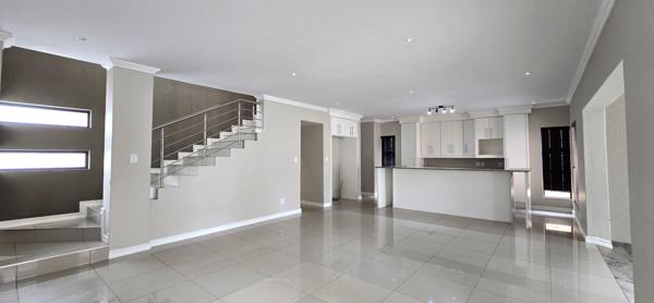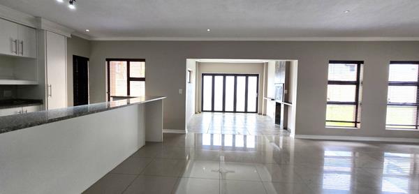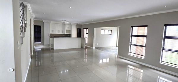 The open-plan living areas flow seamlessly into the enclosed braai room, which opens to a wrap-around garden through stacker doors perfect for effortless indoor-outdoor entertaining. All bedrooms are generously sized, with the main suite featuring a luxurious en-suite bathroom. Situated in a sought-after estate with low levies and excellent security, this home combines comfort, style, and convenience.