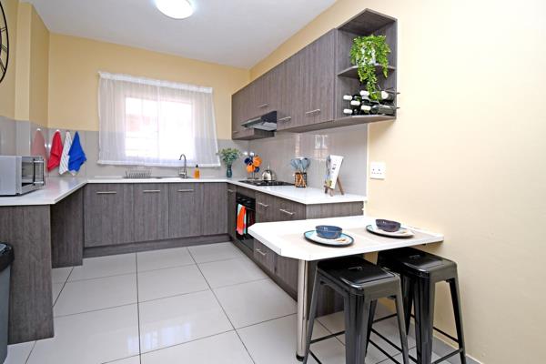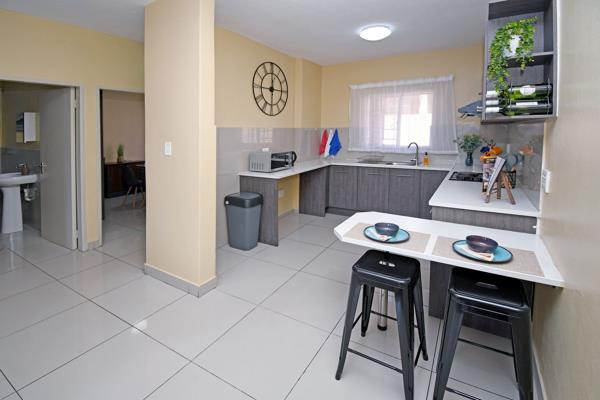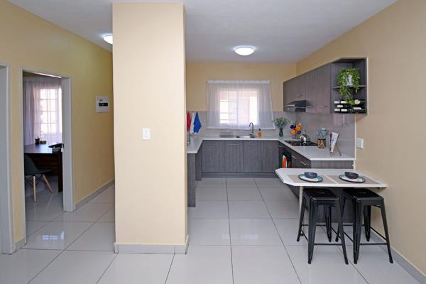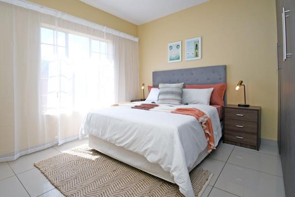 You will find 2 fully tiled bedrooms, each with built-in cupboards. The bathroom boasts with a basin, toilet, bath, shower and sufficient space.