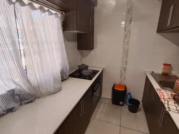 Fully tiled unit with modern kitchen, modern bathroom and 2 x well sized bedrooms with built in cupboards.