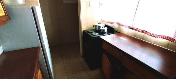 The apartment is fully tiled with built-in cupboards in every bedroom. A spacious living area is opening on to a small balcony. Kitchen with ample wooden cupboards and double sink.