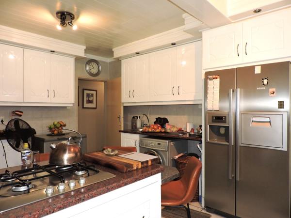 Outdoors, the spacious manicured garden features a large 60,000-liter swimming pool, a thatched lapa, and a boma area complete with a built-in braai and pizza oven.