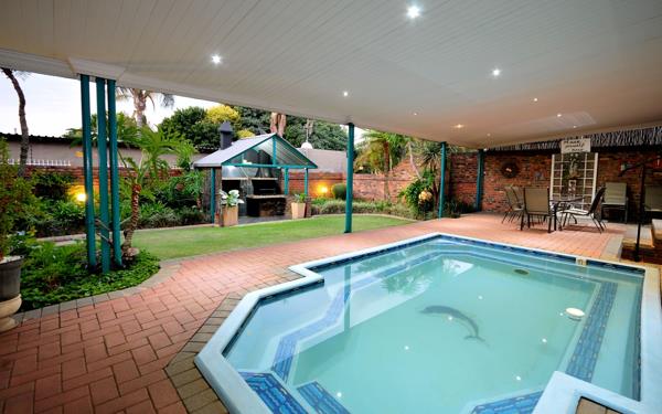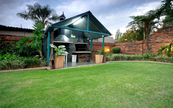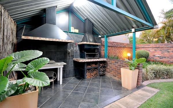 The home features modern laminated flooring throughout, air conditioners, and an anthracite fireplace for cozy winter days. There is also a built-in bar and built-in braai area, perfect for entertaining family and friends.