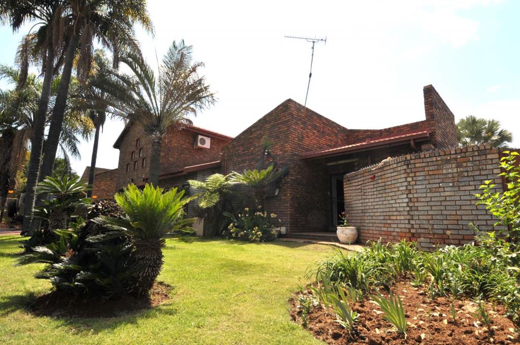 Safety is a top priority with security cameras, a full alarm system, and outdoor lighting that surrounds the yard. A borehole-fed irrigation system keeps the wrap-around garden lush and green, which also features a garden shed for added storage.