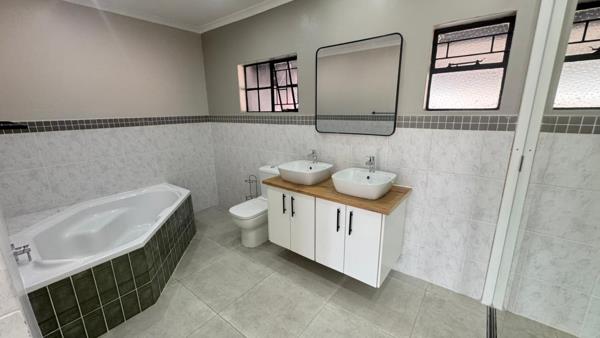 Each of the four bedrooms offers a peaceful retreat, complete with built-in cupboards for easy storage. The three bathrooms are just as modern, with features like a double vanity, a relaxing corner bathtub, and a sleek glass-enclosed shower. You''ll love the outdoor area too, with direct access to a sparkling pool perfect for those sunny South African days. There''s also a garden and a built-in braai for all your entertaining needs, and yes, your furry friends are welcome here!