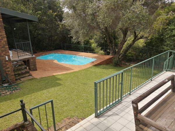 The outbuilding structures consists of staff quarters with toilette, covered balcony overlooking the swimming pool area, very large open verandah overlooking the lower portion of the property, sloping to Moreleta spruit. 3 lock-up garages are situated in the upper portion of the property, close to the remotely controlled entrance gate. The upper portion of the garden is covered by grass, the lower portion going down to the river has a thick natural bush vegetation and large trees. The bird life at the property is abundant.