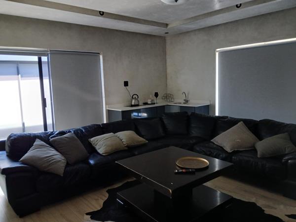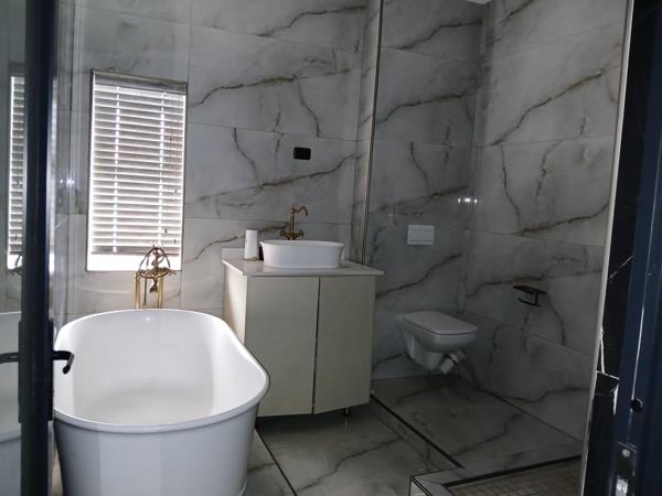 This exquisite property offers the perfect blend of space and style. The ground floor features 5 bedrooms, all with built-in cupboards, a full bathroom, and a modern open-plan living area. The kitchen boasts granite countertops and a scullery, ideal for effortless entertaining.
