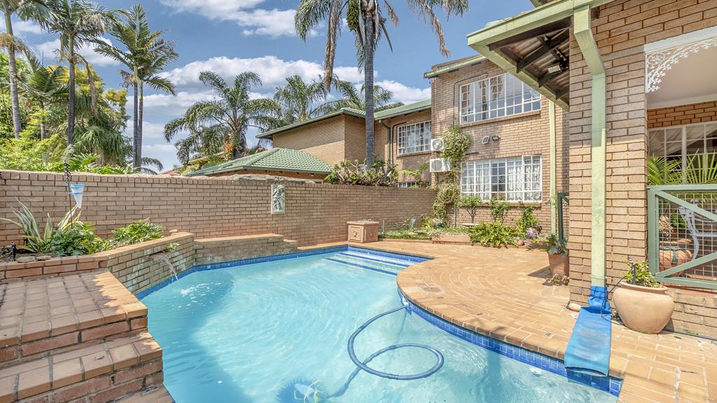 Situated just outside the Wapadrand boomed-off area, is this cottage-style property offering warmth and character with generous living spaces and timeless charm. The main bedroom with a full en-suite bathroom is conveniently located downstairs, complemented by two inviting open-plan living areas, one featuring a cozy fireplace. A large, well-designed kitchen with pantry makes family living and entertaining a pleasure. From the living area, step out to an undercover patio overlooking the sparkling swimming pool and lush, established garden the perfect outdoor retreat.