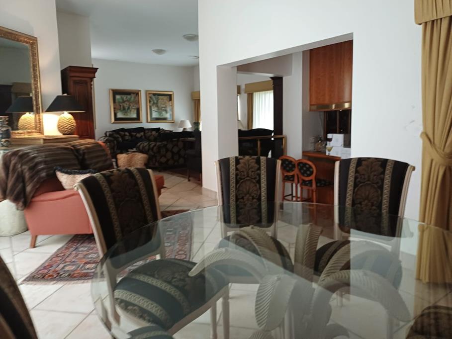 Main house just under 850sqm, has 4 bedrooms, 4 bathrooms, study, 3 living rooms, two dining rooms, huge kitchen with some built in appliances, and separate scullery and pantry. Granite tops, double oven, just to name a few of the features in the kitchen. All the bedrooms face North, while two bedrooms have their own private balcony over looking the prestigious Silverlakes area. Double volume ceilings, large windows, brass balustrades built on different levels,makes this property truly remarkable. But that''s not all.