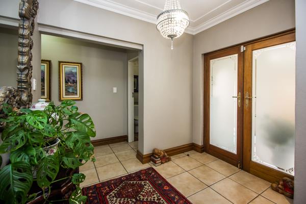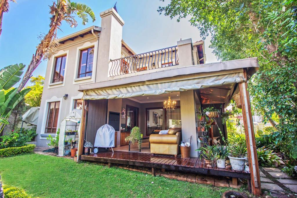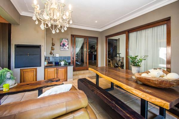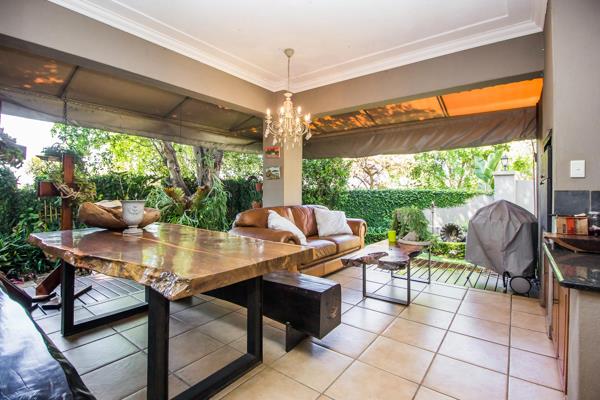 IndoorOutdoor Flow: A large, covered patio with a built-in braai and awnings extends the living space, perfect for year-round entertaining regardless of the weather. The house also features a smaller patiotea garden on the side. Both patios overlook the magnificent garden with automated irrigation.