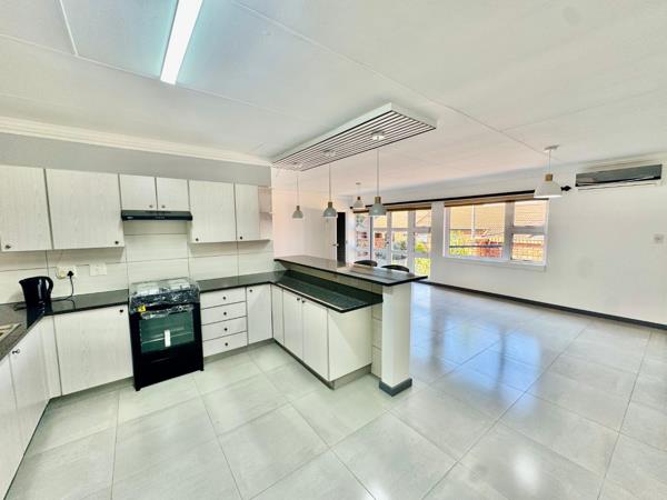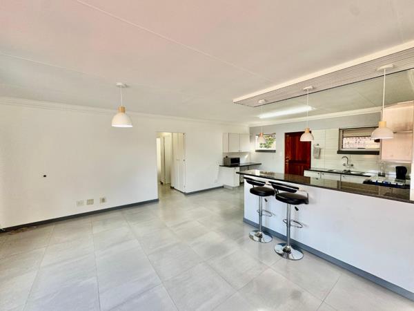 Enjoy the open-plan kitchen with a breakfast counter and dedicated space for appliances, flowing into a spacious living and dining area.