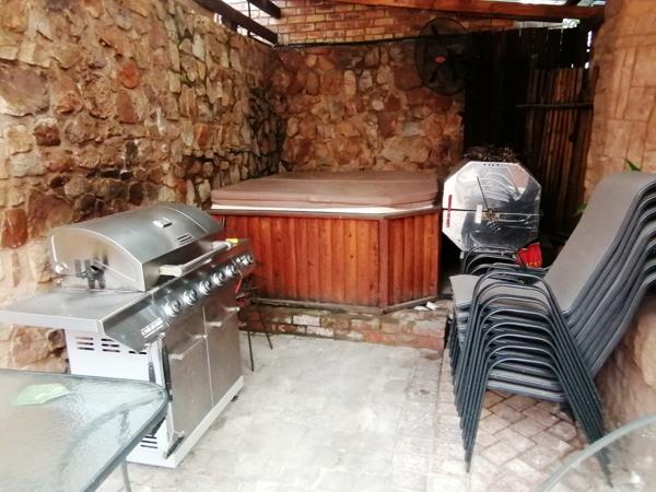 Swimming pool, jacuzzi, 3 built-in braais, koi carp pond, large landscaped multi-level garden, solar electricity capable of providing