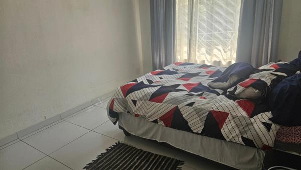The back garden is pet-friendly and provides a private outdoor retreat with a neat garden and a covered braai area, ideal for relaxed gatherings.