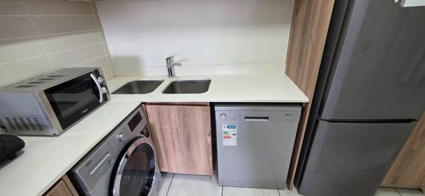 Step into stylish contemporary living with this immaculate 1-bedroom, 1-bathroom apartment for sale in the sought-after and securely managed Blyde Riverwalk Estate in Pretoria East. This modern home offers premium finishes throughout and comes fully fitted with top-tier Defy appliances, including a washing machine/dryer, dishwasher, fridge/freezer, oven, hob, and extractor, making moving in effortless. Fibre and DSTV are already connected, and the estates generator keeps essentials running during load shedding. The unit also includes its own covered carport, with residents managing their water and electricity accounts independently.