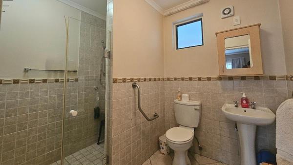 One bedroom with en-suite bathroom that is thoughtfully designed with a large walk-in shower, toilet, and wash basin - ensuring comfort and accessibility.
