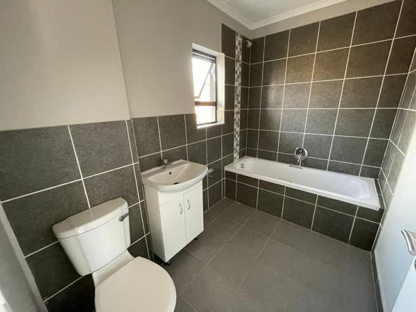 3 Bedrooms with 2 bathrooms (shower in the one and bath in the other). On Suite Bathroom at the main bedroom. Open plan lounge, dining and kitchen. This unit has a balcony. Solar geyser connected to this unit.
