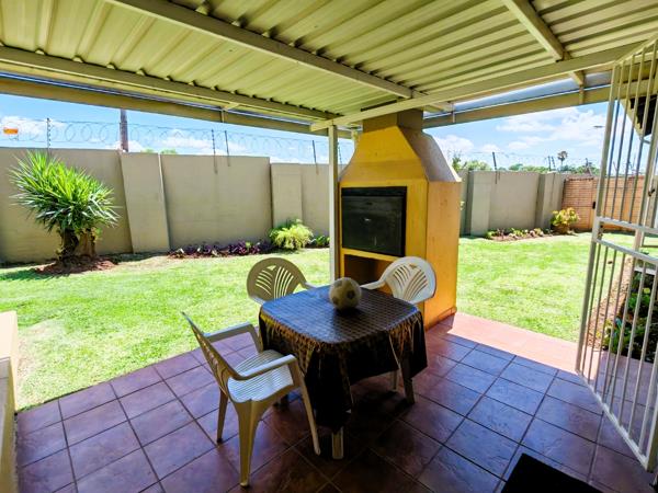 Outside, you''ll love the private garden and tiled covered patio area, complete with a built-in braai ideal for those sunny South African get-togethers. With two garages and additional parking, there''s ample space for your vehicles. Plus, the complex boasts excellent security features like electric fencing, an access gate, and 24-hour security, giving you real peace of mind. Pets are also welcome here, so your furry friends can enjoy the garden too!