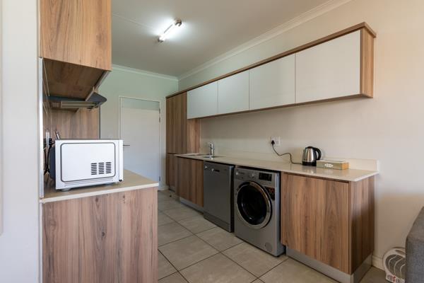 This modern furnished unit on the third floor has a modern kitchen equipped with all essential appliances that include microwave, washing machine, ....
