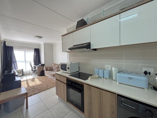 The well-appointed bedroom offers ample space to fit a double bed complete with bedside tables and a wardrobe, providing plenty of storage for your belongings while maintaining a clutter-free and serene atmosphere. The modern kitchen is a chefs delight, designed to house a dining table for four, modern appliances, and additional cabinetry for all your culinary needs, making it perfect for preparing meals or hosting intimate dinners. The spacious bathroom can easily accommodate a vanity unit, a storage cabinet, and all the essentials for a luxurious daily routine, ensuring comfort and convenience at every turn. Beyond the unit itself, The Blyde community fosters a sense of belonging with its thoughtfully planned surroundings, including walking paths and communal areas that encourage an active and social lifestyle. Whether youre looking for a permanent residence or a smart investment property, this apartment delivers exceptional value with its blend of luxury, security, and location.