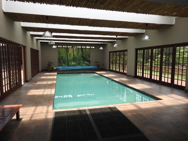 A lapa that boasts a full kitchen, built-in braai,open entertainment area, jacuzzi, two modern bathrooms and heated indoor swimming pool.