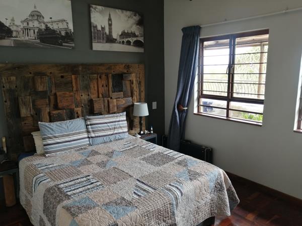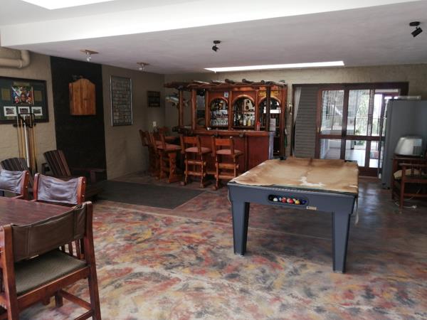 4 bedrooms, 2 bathrooms, dining room, lounge, large covered entertainment area with a bar, snooker area and built-in braai on the upper floor. The ground floor houses 2 garages