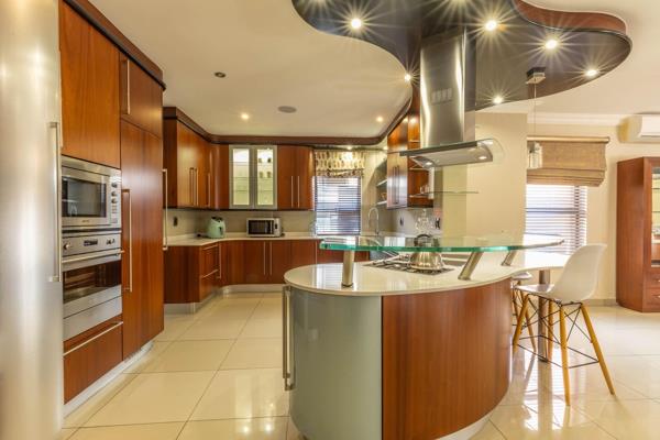The ground floor is designed for both comfort and functionality, featuring a welcoming lounge with a cozy gas fireplace, perfect for intimate gatherings. The modern kitchen is a chef''s dream, boasting a Smeg gas hob, electric oven, built-in dishwasher, and a dedicated space for a double-door fridge. With three ovens and a large pantry, culinary enthusiasts will find this kitchen a true delight. The adjoining scullery is well-equipped with room for an additional appliance. Adjacent to the kitchen, the dining area is air-conditioned, ensuring a comfortable dining experience year-round. The flexible room/gym area, complete with its own bathroom and direct access to the pool, offers versatile space for your lifestyle needs. A guest toilet and a spacious study, ideal for a home office, complete the ground floor. Upstairs, the property continues to impress with four beautifully appointed bedrooms. The first bedroom features built-in cupboards, air conditioning, and an en-suite bathroom with a shower, as well as access to a private balcony. The cinema room, equipped with a screen and projector, promises countless hours of entertainment. The second bedroom, also en-suite with a bath and shower, is carpeted and features built-in cupboards. The pajama lounge offers a cozy retreat, while the third bedroom, designed with pink accents, includes a balcony, carpets, air conditioning, built-in cupboards, and an en-suite bath and shower. The master suite is a true sanctuary, featuring a walk-in closet, en-suite bathroom with dual basins, air conditioning, and a private balcony.