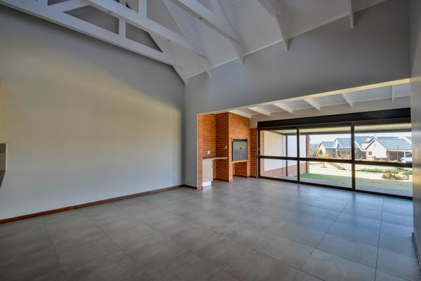 Spacious lounge and open-plan kitchen - ideal for easy entertaining Granite-style counters anchor the kitchens design Wooden window shutters and a stylish brick-finished entrance set the tone on arrival Ample cupboard space plus a built-in spice rack keep cooking essentials close at hand A nook with sliding drawers offers convenient casual dining Dishwasher cubicle kitchen and laundry space garage support easy living Braai with bar fridge and prep bowl - an entertainers dream setup Corner cupboard detailing & shelf above kitchen window add subtle charm Linen cupboard in passage for streamlined storage Undercover stoep and secure washing line round out the outdoor offering