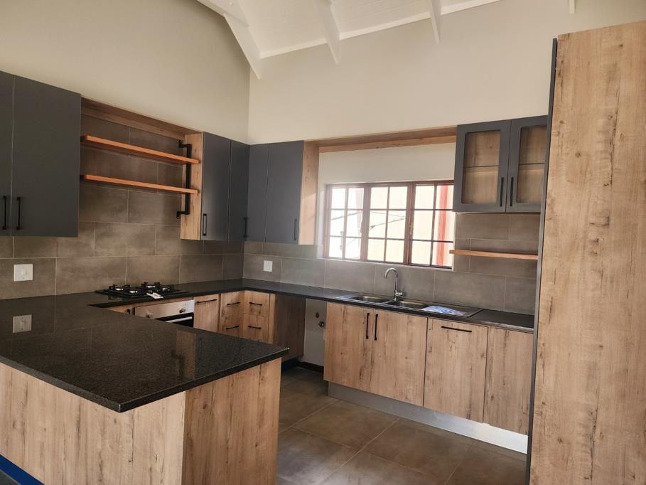 Modern Kitchen: Luxuriously finished, flowing into a closed patio with a build-in braai with aluminium sliding doorsperfect for indoor-outdoor living.