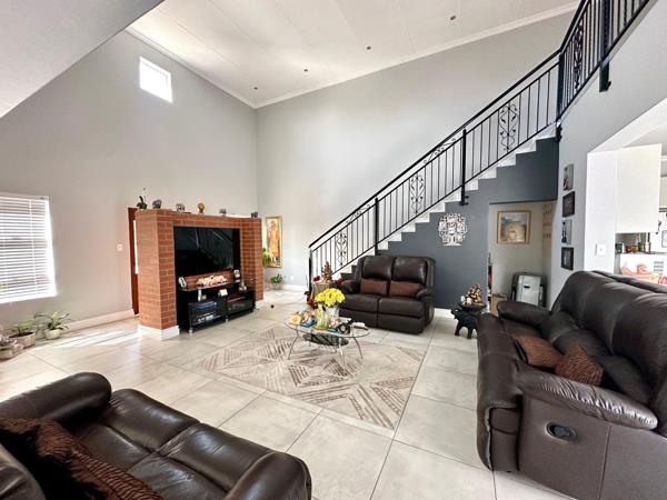 This welcoming home has much to offer with well proportioned living areas which are open plan, the red brick fire place is a warm touch and feature in the living room, dining room open plan to the gorgeous well appointed kitchen with a separate scullery, a large living are or loft upstairs which could be used as a study or extra living area, an enclosed braai area ideal for entertaining.
