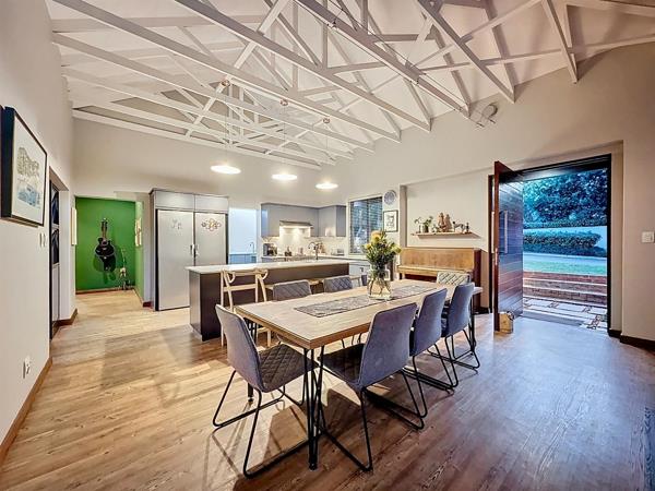 A generous covered patio with built-in braai overlooks the fenced and heated pool, offering privacy and year-round usability. The large wrap-around garden is perfect for children, pets and lifestyle living.