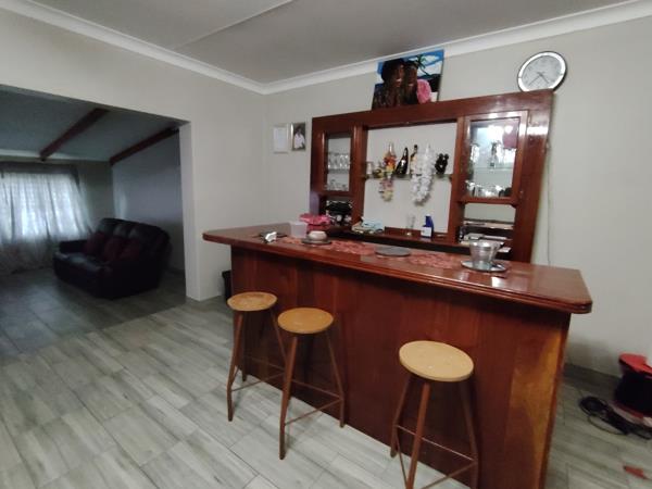 Lounge opens to a large covered patio with built-in braai and fireplace